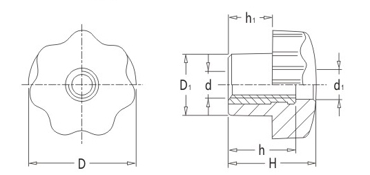 JS.102011 塑料星形把手 顏色:啞光黑 材質(zhì):增強尼龍 用途:適用于各類機械裝備、五金工具、舞臺燈光設(shè)備等行業(yè) 特性:啞光飾面、外形美觀、機械強度高、堅固耐用、標(biāo)準(zhǔn)化使用、安裝簡便