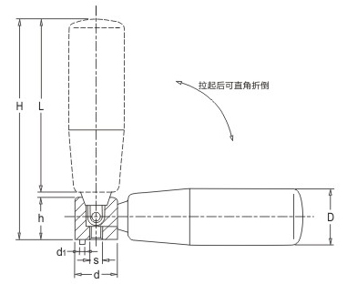 JS.103005 可折手柄 顏色:亮光黑 材質(zhì):酚醛樹(shù)脂(膠木)或增強(qiáng)尼龍 用途:適用于各類機(jī)械上緊固位置的靈活調(diào)節(jié) 特性:手柄拉出后可90度折疊,提高設(shè)備在運(yùn)行中的安全性