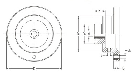 JS.105005 滿輻表盤手輪 顏色:黑色 材質(zhì):酚醛樹脂(膠木)、鋁合金 用途:適用于木工、食品、包裝、印刷等機(jī)械的精密指示或讀數(shù)調(diào)節(jié) 特性:外形美觀、堅固耐用、機(jī)械式結(jié)構(gòu)、
