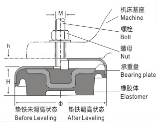 JS.108001 S78-10 shock pad iron Color: yellow Material: steel, rubber Application: applicable to all types of machinery and equipment level adjustment and decrease the vibration of the machine itself