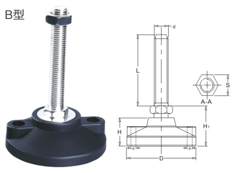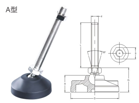 JS.108007 Joint hooves Color: black Material: reinforced nylon, carbon steel Application: suitable for small devices level adjustment and shock absorption.